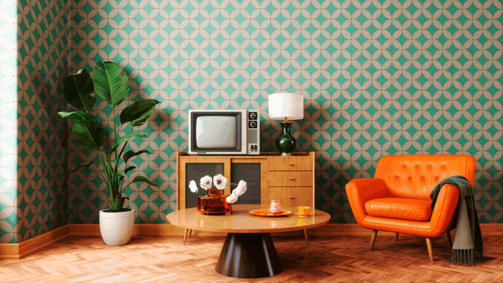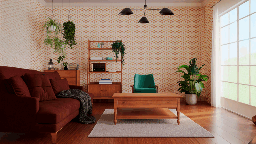 Se a ideia é uma sala moderna, aposte em geometria, cores sólidas e contrastes sutis. Para um clima clássico, arabescos, florais delicados e padrões elegantes são boas escolhas. Já para o rústico, texturas que imitam pedra, madeira ou tijolo funcionam muito bem.